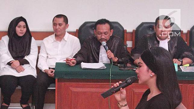 Artis Syahrini dihadirkan sebagai saksi di Pengadilan Negeri Depok, Senin (2/4/2018). Pelantun "Sesuatu" itu memberikan keterangan dalam sidang yang membelit tiga Bos First Travel Andika Surachman, Anniesa Devitasari Hasibuan, dan Siti Nuraidah alias Kiki.